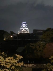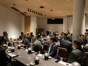 忘年会は熊本城が一望できる城見櫓で開催。(参加53名)